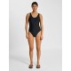 DESCRIPTION. Stretch fabric. Tight fit. Round neck. Scooped back. Subtle front chevron detail. Fit: Tight. The hmlPULSE SWIMSUIT is made from stretch fabric for comfort of movement in the water. Designed with a tight fit, it features a classic round neck and a scooped back. A subtle hummel chevron detail adorns the front. BENEFITS. Recycled fibers 80-95. This product is made with recycled fibers primarily created from recovered plastic bottles