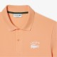 Color combinations and graphics for a Lacoste dynamic and creative identity Regular fit natural ease on body Stretch petit pique Graphic polo with a direct embroidery at chest and heat transfer wording at back 2 rubber buttons placket Green herringbone necktape 3cm green crocodile at bottom garment - right side when worn 6cm direct embroidery with Lacoste wording and crocodile at chest Print at back bears reference to the brand creation date 1933