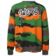 This striking sweatshirt blends urban streetwear style with a bold all-over camouflage design. While the front features a subtle embroidered chest logo for a minimalist touch, the back is dominated by a prominent ´´DNGRS´´ graffiti-style print complete with authentic drip effects. The classic crew neck and contrasting ribbed cuffs at the sleeves and hem complete the modern design, providing a structured silhouette within a relaxed fit.