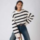 Our Candide Crewneck Sweater is a true staple - the kind you bring with you everywhere and anywhere. It features a classic crew neckline, voluminous bell sleeves, a relaxed fit and a wide stripe design. Plus, we gave it a side slit and a hem that´s higher in the front and lower in the back for a feminine touch. Features: A true staple. Cut with a relaxed fit. Made with a soft wool blend. Neckline:Crewneck. Composition: 60% Cotton, 30% polyamide, 10% wool.