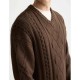 V-Neck Chunky Cable Loose Fit Pullover. Composition: 58% Cotton, 25% Nylon, 17% Polyester.