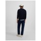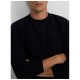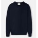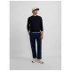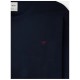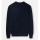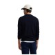 Classic navy blue sweater made from a cotton and cashmere blend. It features a round neck and long sleeves. It features a contrasting burgundy racquet embroidery on the torso. Specifications: - Material: 90% BCI Cotton, 10% Cashmere Care: - Hand wash - Wash separately - Do not use a dryer - Do not use bleach or whiteners - Iron at low temperature