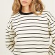 Дамска блуза Brave Soul BS Womens Crew Neck Striped Sweatshirt with Contrast Neck - Cream/Black