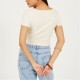 Brave Soul Women's T-shirt. Cropped length, short sleeve, crew neck. Matching colour button closure, lettuce hem and cuff edges.