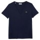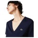 Women´s V-neck Loose Fit Cotton T-shirt. V-neck. Soft cotton jersey. Loose fit. Decorative overstitching. Embroidered green crocodile on chest. Composition: Main base:100% Cotton.