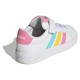 These shoes bring a modern refresh to the iconic adidas Grand Court, offering upgraded comfort in a design your kids will love.Playtime stays playful and school runs go faster thanks to elastic laces for easy on-and-off.A flexible forefoot puts a spring in young steps, with a top strap to secure a snug and stable fit.Parents will appreciate the non-marking rubber cupsole, which can also be relied upon for grip and durability.Sleek yet sturdy, this shoe prioritises style and function.Signature branding signs off the classic look.Logos on the sole, heel and tongue will appeal to young fashionistas, while the colourful 3-Stripes remind us that this shoe is meant for fun.FEATURES:-Regular fit.-Elastic laces with top strap.-Synthetic material upper.-Textile sockliner.-Rubber cupsole.