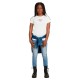 The kids G-Star 3301 Skinny jeans feature a classic 5-pocket construction inspired by authentic Western jeans. These kids´ jeans have an adjustable waist. Combine it with a graphic T-shirt of comfy sweater of our kids collectie. Features: Mid waist- adjustable waistband. Tight legs. 5 pockets. Zip fly. G-Star RAW label at the back, made from a leather-like paper fabric. Size & Fit: Skinny Fit. Materials: 3x1 right hand twill construction. 93% Cotton (Regenerative), 5% Elastomultiester, 2% LYCRA® Elastane. Regenerative cotton is produced via a system of farming principles and practices that increases biodiversity, enriches soils, improves watersheds, and enhances ecosystem services. The LYCRA® fibers we use are high performance stretch fibers which hold a Gold Level Material Health Certificate from the Cradle to Cradle Products Innovation Institute. Added stretch for ease of movement.