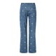 Дънки Pieces Flora Straight Emb high waist jeans - Blue (Medium Blue Denim / White Flower Embroidery)