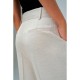 In raw beige, these linen chino trousers evoke bright days and airy silhouettes. The wide leg elongates the line and creates a fluid, almost ethereal movement, naturally accompanying each step. The waistband with belt loops allows for defining the waist with a thin belt or taking a more relaxed approach. The zip and button opening ensures a precise fit, while the front pockets enhance functionality. At the back, the decorative pockets maintain a clean and contemporary aesthetic. Light, fresh, and thoughtfully designed, they are the perfect base for soft coordinates and proposals that celebrate the freedom to dress for leisurely days. - Linen chino trousers. - Beige colour. - Wide leg. - Zip and button opening. - Two front pockets, two non-functional back pockets. - With belt loops. Fit:Regular. Pattern:Plain. Waist:High. Bottom:Wide. Main Fabric: 84% Viscose, 16% Flax. Lining Fabric: 90% Polyester, 10% Cotton.