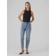 -Product Type:Mom fit jean. -Closing:Button and zip fastenin. -Pockets:Back pockets, Coin pocket, Front pocket. -Waist:High ris. -Length/size:Ankle lengt. -Wash/finish:Stonewash for a faded, worn loo. -Fit:Mom Fit. Material: -79% Cotton, 20% Recycled Cotton, 1% Elastane. This product is made with recycled cotton. Recycled cotton saves natural resources and reduces the amount of textile waste. Care Instructions: -30°C fine wash, Do not bleach, Professional wet-cleaning, Do not tumble dry, Iron at low temperature, Professional dry-cleaning in:perchloroethylene, hydrocarbons (heavy benzines).