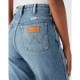 Our Mom Straight jeans are designed with a flattering curved high waist, a classic straight leg. Complete your wardrobe this season with our Mom Straight jeans in low-stretch blue denim. An effortless vintage-inspired style you can wear for years to come. Features: The fabric in this garment is made with at least 5% recycled cotton and at least 65% cotton grown in selected regions of Africa that statistically use less fertilizers and pesticides as compared to conventionally-grown cotton outside of Africa. Data backed by ICAC World Cotton Data Book. The finishing process of this garment was calculated as having an overall low-environmental impact score via Jeanologi´s Environmental Impact Measure (EIM) tool that assesses water, energy, chemistry and workers´ health areas. Authentic Wrangler logo patch on the back pocket. Composition: 99% Cotton 1% Elastane.