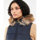 Barbour's Midhurst Faux Fur Trim Hooded Gilet delivers warmth with practical style. This sleeveless vest features the Barbour International logo patch at the base, with a full-zip design that offers adaptable styling with fine detailing and a luxurious faux fur hood trim for additional warmth.
