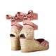 - Braided raffia wedge heel exudes sophistication and style.