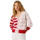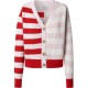 V-neck cardigan with buttons down the middle and stripes in different positions and colours all overembroidered logo at the back. Composition: 100% Cotton. Sustainable information: Sustainable cotton minimises the use of harmful chemicals, improves soil quality, and prevents contamination to help protect the health of growers and local wildlife. Made with 100% sustainable cotton. 100% BCI Cotton.