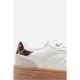 Design: Low wedge lace-up trainer with leopard heel detail