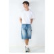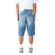 Denim Carpenter Bermuda Shorts. Carpenter-style denim bermuda shorts made from 100% cotton, featuring a worn effect on the front. Designed with two front pockets, back pockets and a functional side pocket. Durable and urban design, ideal for a casual look with character.