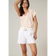 Straight-cut cotton shorts with an elasticated waist, front drawstring and floral striped print. The MELIDIA shorts are made from 100% cotton and feature a straight, easy fit. Designed with an elasticated waistband and an adjustable front tie, they offer everyday comfort. The floral striped pattern adds a fresh summer vibe, making them perfect for warm days and relaxed looks.