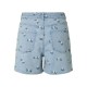 Къси панталони Pieces Flora Denim Emb HW shorts - Blue (Light Blue Denim / Pink Flower Embroidery)