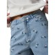 Наименование: Къси панталони Pieces Flora Denim Emb HW shorts (Light Blue Denim / Pink Flower Embroidery)