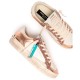 Sneaker crafted from premium Made in Italy materials. - White and rose gold leather upper with cream suede details. - White leather heel tab. - White leather tongue with branded leather label. - White leather patch on the back. - Marshmallow polyester laces. - Single iridescent tag. - Leather and fabric lining. - Cream eco-leather foxing sole, 2.5-3 cm high, light honey outsole. - Vintage finishing. - Regular fit.