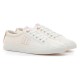 White sneakers for women by Mtng, Aria model, with a casual and minimalist style. The clean design includes light pink details on the heel, side logo, and eyelets, adding a subtle pop of color. With lace-up closure and flat sole, this model is ideal for daily wear thanks to its lightness and comfort. Perfect to pair with casual outfits, offering a practical choice for those looking for simple footwear with a feminine touch.