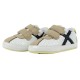 This sneaker is specifically designed for toddlers, combining a classic style with a functional structure that respects foot development. The model features a white perforated leather finish for enhanced breathability, beige suede details on the toe and heel, and the brand´s iconic logo in contrasting black. The double velcro closure ensures a quick and secure fit, making it perfect for daily wear or occasions that require a neat yet sporty look. The Barefoot model provides a natural and versatile step with a clear sporty vibe, featuring a last shaped like natural toes and a minimal thickness midsole to ensure close ground contact and great flexibility.