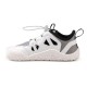This kids´ hybrid sports design sneaker comes in an elegant combination of with technical details and reinforced stitching. The Barefoot model offers a natural and versatile step with a clear sporty style, featuring a last that respects the natural shape of the toes and a minimal thickness sole that allows for great flexibility and a sense of contact with the ground. It is an excellent choice for multi-sport activities, physical education classes, or active outdoor play where lightness and constant ventilation are required. Cleaning; this model is machine washable, greatly facilitating the maintenance of the white color after intensive use. It features a quick-adjust system with elastic and a toggle to secure the foot comfortably and without complications.