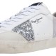 Lane Silver W sneaker made in leather with fantasy pieces such as glitter and snake texture, removable and thermoformed insole, scuffed marks as distressed effects on the rubber outsole and classic logo on lateral. External composition: 50% Cow Suede, 40% Action Leather, 5% Rubber, 5% Polyurethane. Internal composition: 60% Polyurethane, 40% Polyester. Sole composition: 100% Rubber.