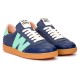 NUBIA 01 sneakers crafted from a combination of suede and textured leather in Navy Blue blue and mint green tones. This timeless design stands out for its clean, streamlined silhouette, enhanced by the iconic logo on the outer sides. They feature classic lace-up fastening and a caramel-coloured rubber sole that is flexible and durable, ensuring a stable and comfortable stride throughout the day. In addition, the removable MemoryGel insole adapts perfectly to the foot, providing comfort with every step. Wonders is committed to responsible manufacturing certified by LEATHERWORKINGGROUP.