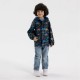 The boys rain jacket offers dependable protection against rain and wet weather conditions. It has a navy blue base with an all-over printed pattern, designed specifically for boys within the height range of 92-164 cm. The jacket is made from a lightweight fabric, which supports ease of movement and comfort during outdoor activities. Key details include a front zip closure and an attached hood to provide protection from rain and wind. The ribbed cuffs secure the fit at the wrists and help prevent water ingress. Two front pockets provide practical storage for small items. The fabric is simple to wash and maintain, ensuring durability and suitability for everyday wear.