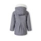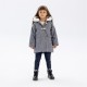 A girls padded jacket designed for warmth and style suitable for the colder seasons. This jacket features a classic cut tailored in navy, presenting a versatile appearance for various occasions. The exterior fabric merges wool with shiny lurex fibres, lending a subtle sparkle to the surface. Inside, the jacket contains a plush faux fur lining for added insulation. The hood includes a matching faux fur trim, enhancing both comfort and visual detail. Secure front fastening supports easy dressing while maintaining a close fit. This garment is constructed with attention to both functional wearability and enduring seasonal comfort.