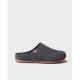 MAUI-LX. This women´s clog-style slipper is made of felt with glitter. The sole is flat, 0.5 cm thick, and made of non-slip rubber. It has a removable insole with a 1.5 cm thick wedge in the heel area, giving the foot a total height of 2 cm. This model fits true to size.
