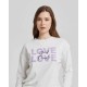 Sweater and trousers in warm cotton interlock. Solid color sweater with round neck and placed print. Solid color trousers with lateral pockets and cuff at bottom.