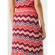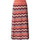 Long knit skirt with ribed waistband and multicoloured zig zag pattern all over, with wavy finish on the hem. Composition: 72% Modal, 28% Paper.