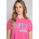 Hot pink short sleeve crew neck t-shirt on cotton-modal jersey knit. Includes Party Animal graphic.