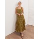 At Anaya with Love each item is consciously designed and made with 100% recycled fabric allowing you to embrace both style and sustainability. This midaxi dress showcases intricate textures and captivating patterns in its floral burn-out fabric, rendered in a golden olive hue, perfect for summer events. The square neckline and wide straps frame the bodice with understated elegance, while the softly fitted waist defines the figure without compromising comfort. Cascading tiered panels create fluid movement in the skirt, offering a light, airy finish with every step. Complete the look with delicate heels and gold accessories for a sophisticated yet subtly sultry ensemble.