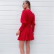This Red V-Neck Long Sleeve Skater Dress is the perfect day dress this season. Featuring long sleeves with deep cuffs, and a gorgeous pleated hem skirt. Style with ankle boots, headband and a cute saddle bag for trendy day look!