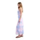 Flowy midi strappy dress with light blue and salmon pink abstract print. Composition:95% Polyester, 5% Elastane.
