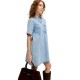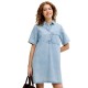 Elevate your everyday style with our essential denim pieces. Crafted for comfort and versatility, these timeless pieces are a must-have for any wardrobe. Perfect for any occasion, they effortlessly complement your favorite other stable pieces. Denim is a durable twill fabric characterised by a dyed warp yarn and weft that are woven together. - Product Type:Denim dress. - Neck:Shirt collar. - Sleeve:Short sleeves. - Closing:Button fastening. - Pockets:Side pockets. - Length/Size:Short. - Wash/Finish:Stonewash for a faded, worn look. - Fit:Relaxed Fit. Composition: Main fabric: 95% Cotton, 5% Recycled Cotton. Care instructions: Wash with similar colors, Wash inside out, Do not expose to direct sunlight during drying, Wash only when highly necessary. 30°C fine wash, Do not bleach, Do not tumble dry, Iron at moderate temperature, Do not dry-clean.