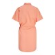 Get ready for summer with a light beach style that ensures a fresh, fun, and colourful look. Woven fabric is a strong and durable material that does not stretch like knitted fabrics. - Product Type: Dress. - Neck: Shirt collar. - Sleeve: Short sleeves. - Closing: Button fastening. - Length/Size: Mini length. - Extra details: Belt in waist. - Fit: Relaxed Fit. Composition: Main fabric: 44% Cotton, 30% Recycled Cotton, 26% Linen.