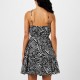Рокля Golddigga Tie е с елемент тип връзка отпред, под него закопчаване с копчета и ластик в зоната на талията.