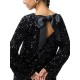 Рокля Pieces Kam Deep Back Bow long sleeve dress - Black (Black / Black Sequins)