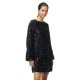 Наименование: Рокля Pieces Kam Deep Back Bow long sleeve dress (Black / Black Sequins)