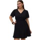 Make a statement in a beautiful mini dress. With heels and your favourite accessories, this dress provides a perfect evening-look. Whether you are enjoying the summer or going dancing you can never go wrong with a mini dress. Curve styles are designed to fit curvy female bodies. - Product Type:Dress. - Neck:V-Neck. - Sleeve:Short sleeves. - Closing:Button fastening. - Length/Size:Short. - Fit:Regular Fit. Composition: Main fabric: 100% LENZING™ ECOVERO™ Viscose. Sustainable information: The main material in this product contains a minimum of 50% LENZING™ ECOVERO™ Viscose fibres.