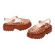 Step into a modern icon with the MELISSA Possession Platform II jelly sandals, a bold reinterpretation of a timeless classic. Designed for those who lead trends, not just follow them, this sandal elevates the beloved 90s fisherman-style silhouette with a contemporary, chunky platform sole. It’s the perfect fusion of nostalgic charm and avant-garde fashion, crafted to make a definitive style statement with every step you take. Experience the perfect balance of height and comfort. The Possession Platform II features a substantial yet surprisingly lightweight platform sole that provides a significant lift while ensuring stability and ease of wear throughout the day. Say goodbye to the discomfort often associated with high footwear; this platform is engineered for walking, dancing, and owning your space. The classic caged upper, a signature of the Possession style, securely cradles your foot, offering both breathability and a secure fit, while the adjustable pin-buckle side strap allows for a perfectly customized feel. Crafted for expressive individuals, these sandals are a testament to versatile and inclusive design, making them a standout choice for both Men and Women. Whether you´re channeling a Y2K aesthetic with baggy jeans, adding an edgy twist to a summer dress, or elevating a casual shorts-and-tee look, the Possession Platform II adapts effortlessly to your personal style. Its distinctive silhouette is instantly recognizable, marking you as a connoisseur of design-led footwear. Beyond its stunning looks, this sandal embodies the Melissa spirit: it is 100% vegan and made from recyclable material, allowing you to make a fashion-forward choice that is also mindful. Enjoy the signature, subtle bubblegum scent infused into the material—a delightful and unique Melissa trademark. Technical Specifications: * Style: Platform Jelly Sandal * Design: Reimagined classic with a contemporary chunky profile * Upper: Iconic caged "fisherman" design for breathability and a secure hold * Closure: Adjustable side strap with a pin-buckle fastening for a custom fit * Sole: Extra-high, lightweight platform for elevation and all-day comfort * Attributes: Unisex design suitable for Men and Women * Key Benefit: Provides significant height with the comfort of a flat sandal * Special Feature: Infused with a signature bubblegum scent MELISSA POSSESSION PLATFORM II AD. Composition: - Upper: 98% PVC + 2% METAL. - Insole: LAMINATED PVC. - Outsole: 100% EVA.