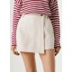 Asymmetric skort with wrap silhouette. This skort comes in a rigid white denim. Fit:Regular. Waist:High. Dimensions:12 OZ. Composition: 100% Cotton. Sustainable information: Sustainable cotton minimises the use of harmful chemicals, improves soil quality, and prevents contamination to help protect the health of growers and local wildlife. Made with 100% sustainable cotton. 100% BCI Cotton.