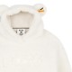Sherpa hoodie. Collaboration with STEIFF x BOSS. The same model is available in adult sizes. Two sherpa ears on the hood. Large BOSS logo in sherpa, centered on the chest. Elastic waistband and cuffs. STEIFF and BOSS tag on the hoodie ear. Two side pockets. Full lining in hood, pockets, sleeves, and body. Composition: 100% polyester - Trim: 100% polyester - Lining: 100% polyester. Care label: Wool wash - Do not bleach - Do not tumble dry - Iron at low temperature - Do not dry clean