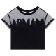 This cotton T-shirt features a transparent insert on the shoulders that adds a bold and modern detail. The logo decoration with a stencil effect on the chest brings an urban vibe, while the round neckline and short sleeves ensure comfort and style. Perfect for a fresh and contemporary outfit.