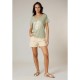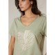 Women´s cotton V-neck T-shirt with a zebra heart and gold lightning print. LOVERS Women´s short-sleeved T-shirt made from 100% cotton. Designed with a flattering V-neckline, a straight fit and slightly turned-up sleeves, it features a central heart graphic with a zebra pattern crossed by a glittery gold lightning bolt. A bold and rock-inspired twist on a casual essential, perfect for energising everyday looks.