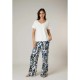 Women´s cotton and linen T-shirt with embroidered V-neck and turn-up sleeves. LYVIA Women´s short-sleeved T-shirt made from a cotton and linen blend, ideal for summer. Its straight fit is enhanced by a V-neckline highlighted with a contrasting embroidered detail that draws the eye. The sleeves are finished with stitched turn-ups for a relaxed touch. An easy-to-wear piece that combines natural comfort with a subtle stylish detail.